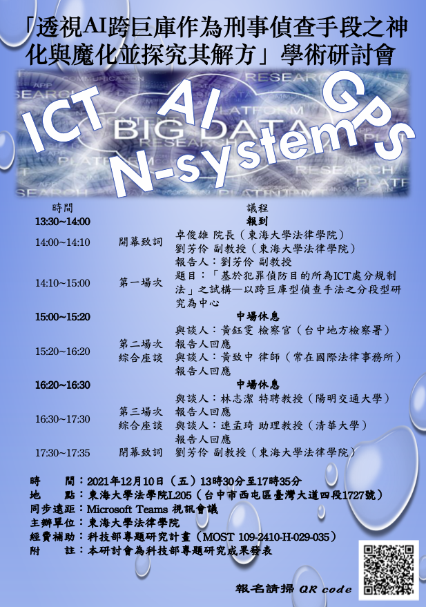 「透視AI跨巨庫做為刑事偵查手段之神化與魔化並探究其解方」學術研討會--20211210