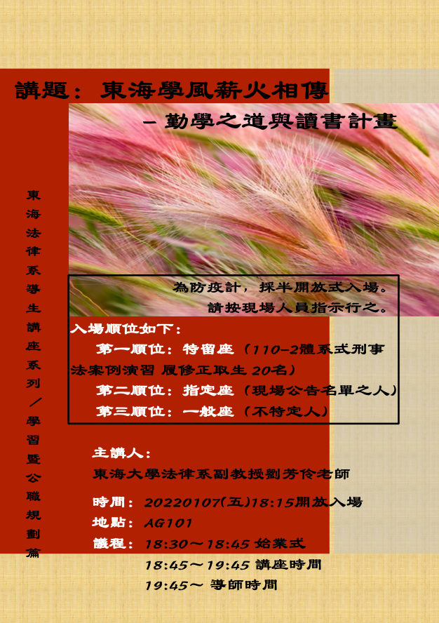 演講:東海學風薪火相傳--劉芳伶副教授 2022/01/07