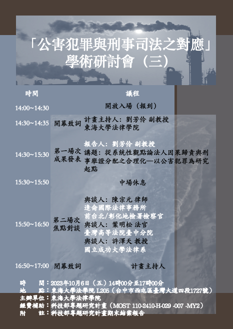 「公害犯罪與刑事司法之對應」學術研討會(三)--2023/10/06