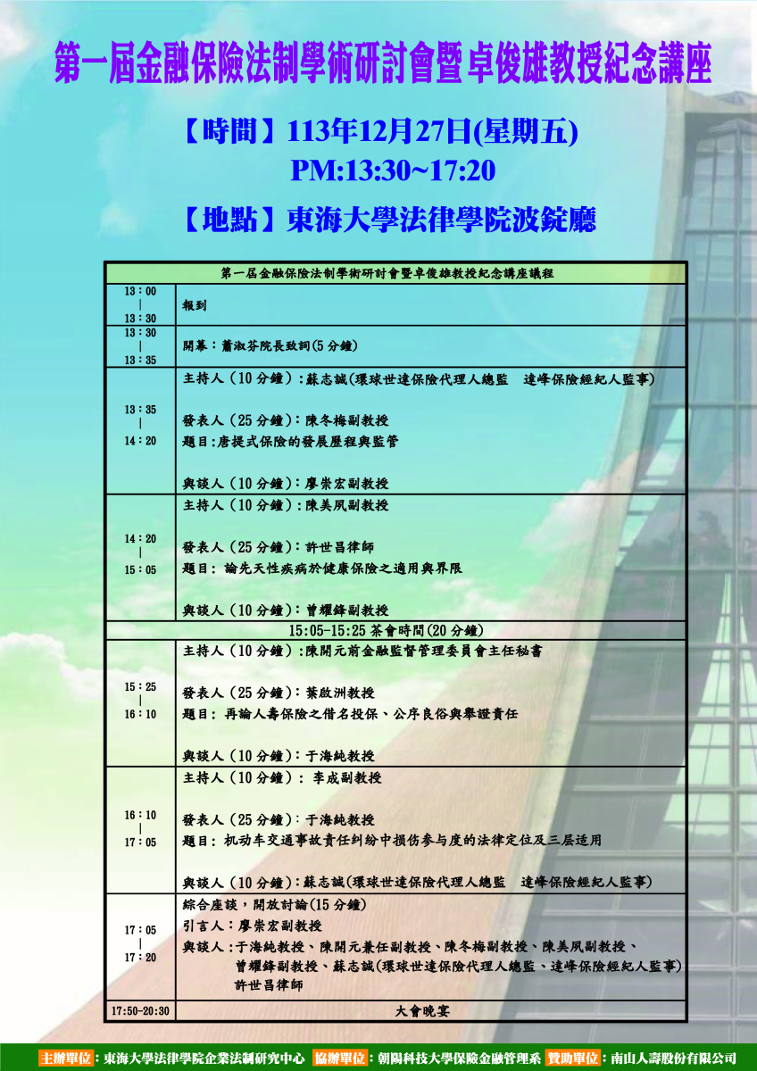 第一屆金融保險法制學術研討會暨卓俊雄教....