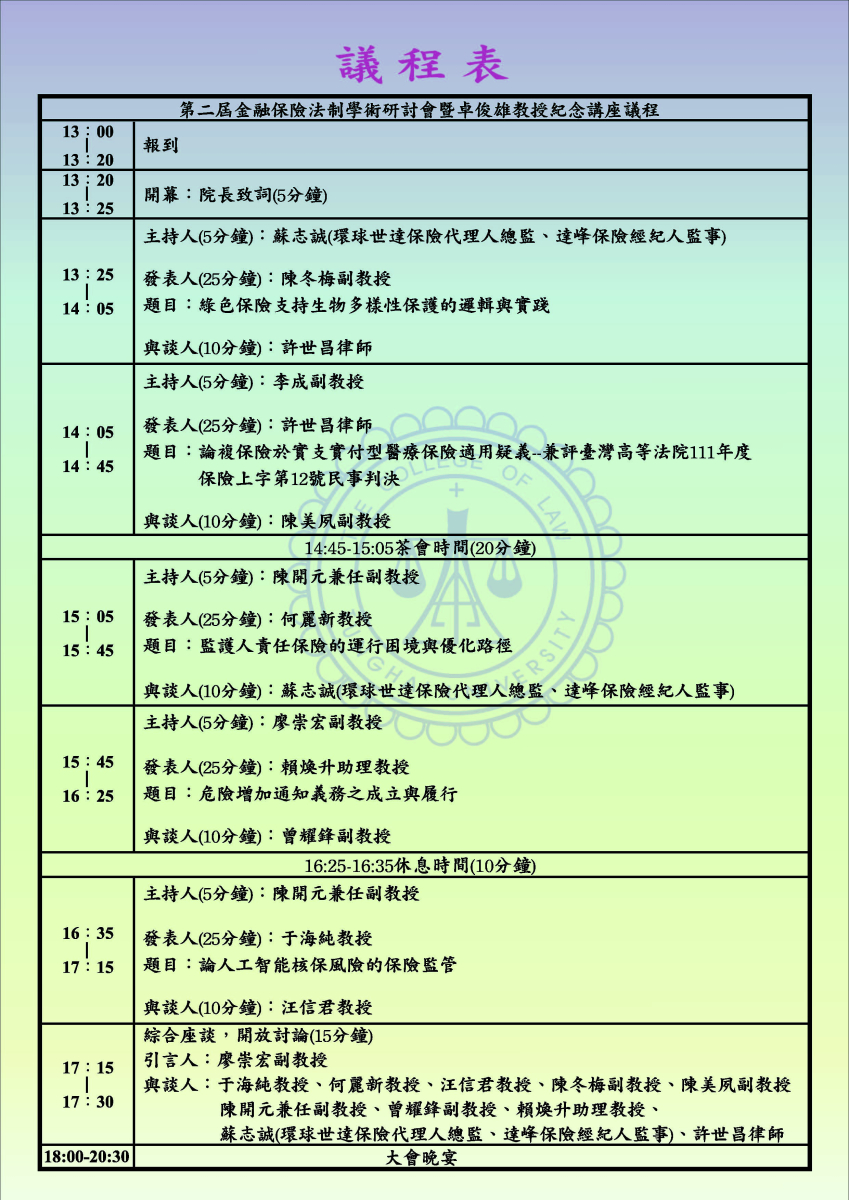 第二屆金融保險法制學術研討會暨卓俊雄教....