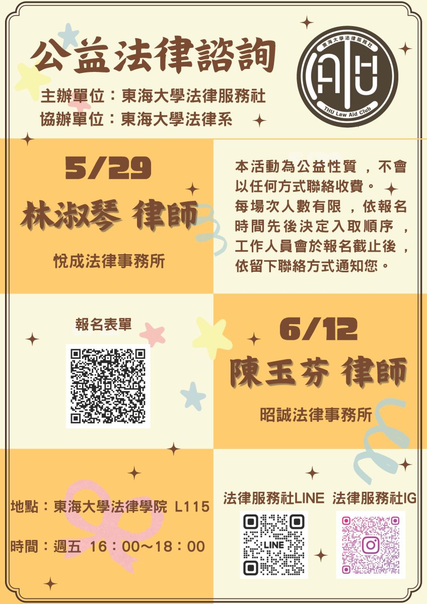 主辦單位:東海大學法律服務社 協辦單位:東海大學法律系