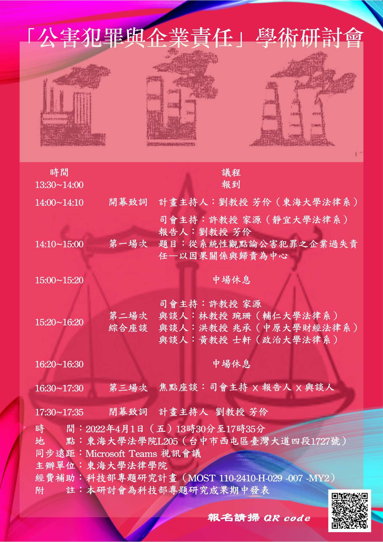 公害犯罪與企業責任學術研討會--2022/04/01