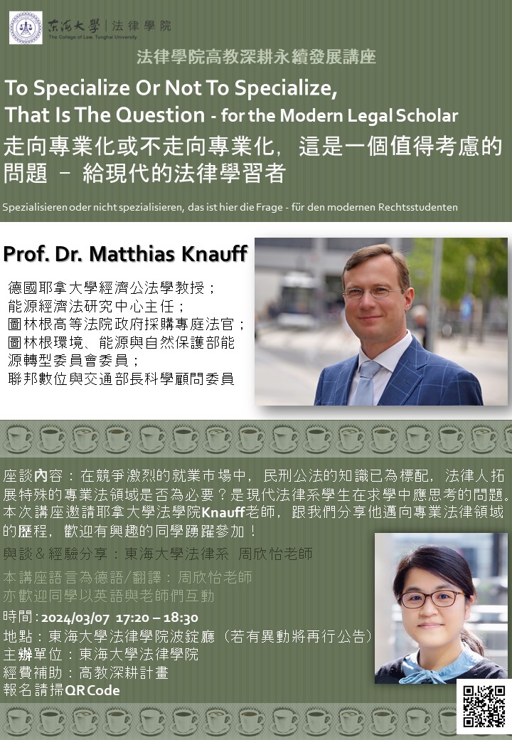 法律學院高教深耕永續發展講座:Prof. Dr. Matthias Knauff(德國耶拿大學經濟公法學教授)--20240307