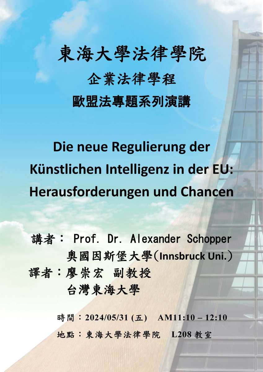 企業法律學程 歐盟法專題系列演講(Prof. Dr. Alexander Schopper 奧國因斯堡大學)--20240531